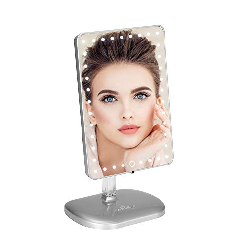 Product reviews Impressions Touch Pro Makeup Mirror with LED Lights and Bluetooth Speaker, 360 Adjustable Rotation Rectangle Vanity Mirror with Touch Screen Switch and USB Charging Port (Silver)